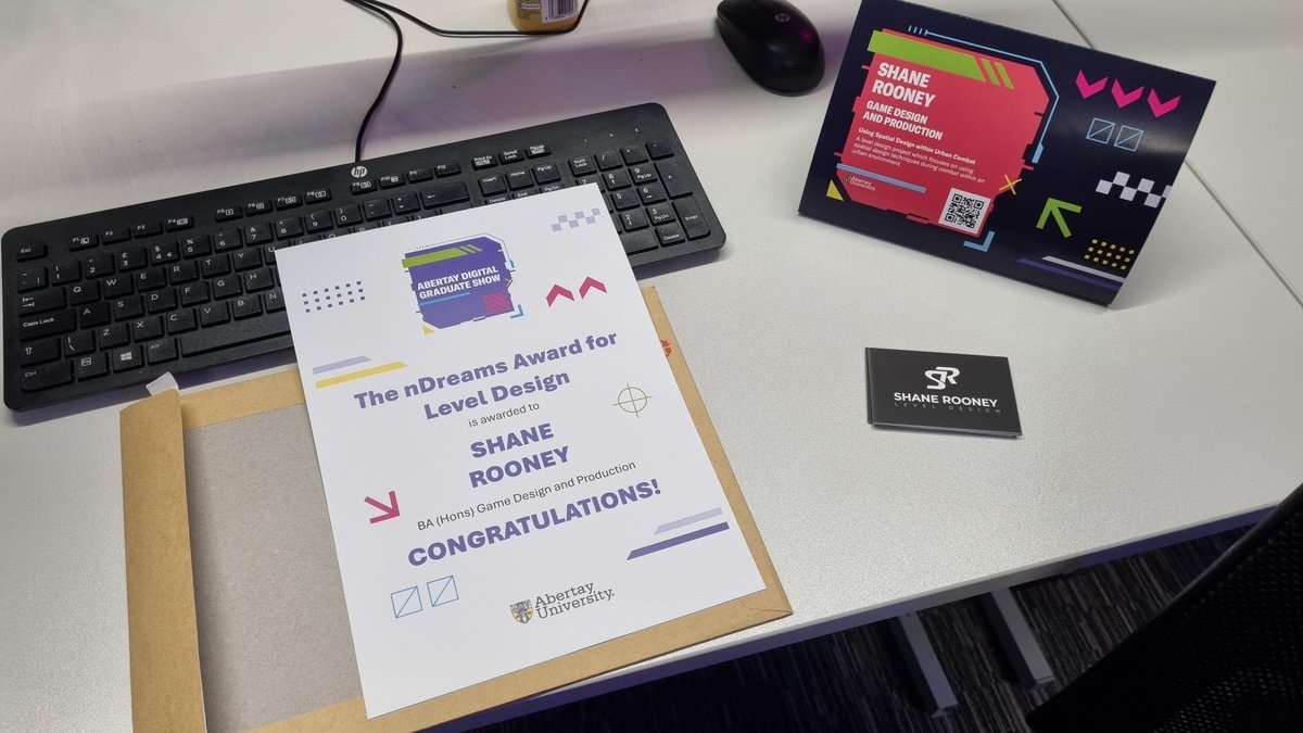 At the Abertay Digital Graduate Show 2024 I was able to present my Level Design to both the public and many other industry members. During the award ceremony my project was given the award by nDreams for best Level Design. This event was amazing as i was able to get lots of feedback and testing so i could further improve aspects of my level and future design projects.